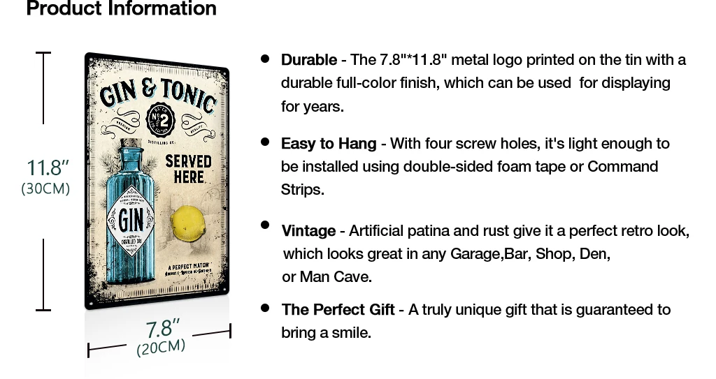 Package Content: 1 x Tin Sign & 2 x Double Sided Foam Tape