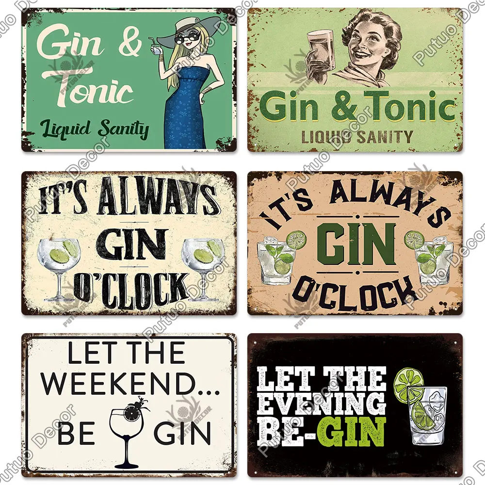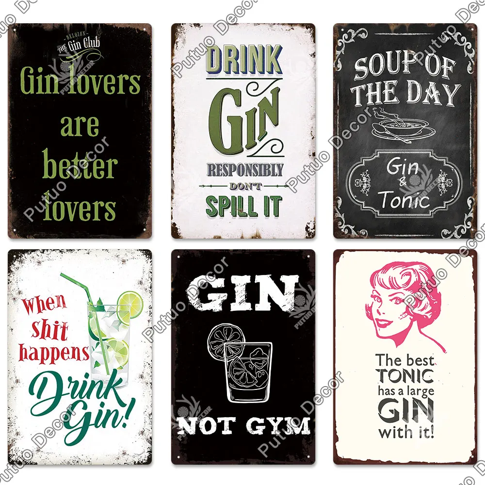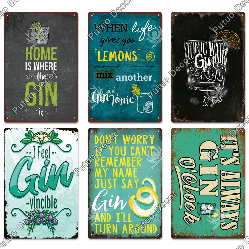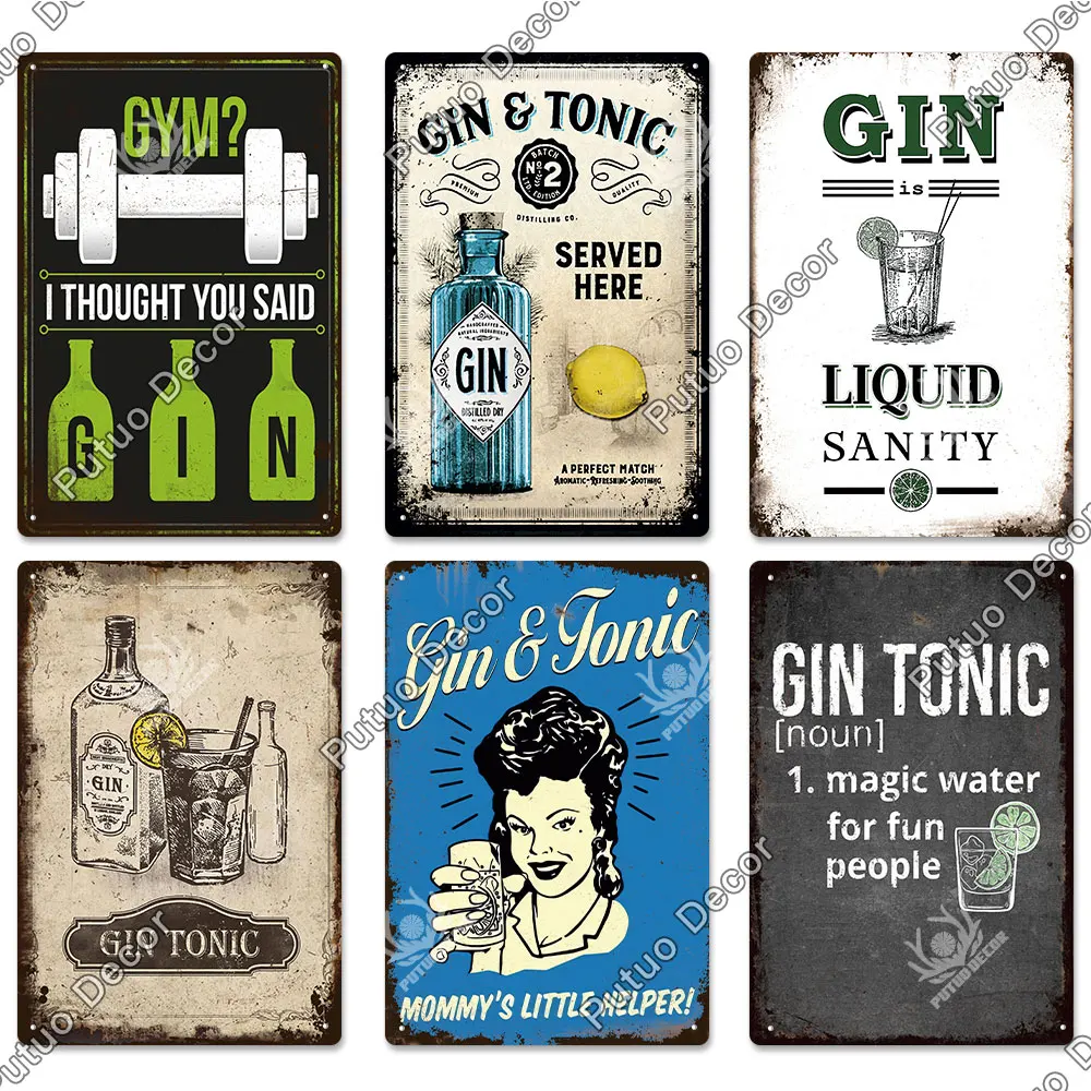 Putuo Decor GIN Plaque Metal Vintage Tin Sign Retro Alcohol Plaque Wall Art Posters for Kitchen Bar Pub Man Cave Club Home Decor